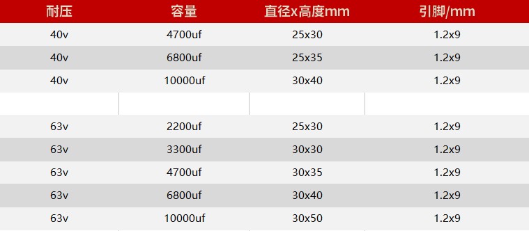 4700uf 40v 6800uf 40v 10000uf 40v 2200uf 63v 3300uf 63v 4700uf 63v 6800uf 63v 10000uf 63v