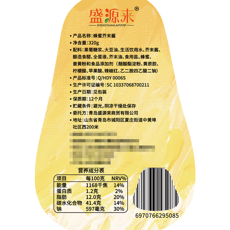 Fruit Grape Sauce Soybean Oil Drinking Water Mustard Jam Apple Vinegar Starch Whole Egg Liquid Mustard Powder Edible Salt Honey Turmeric Powder and Food Additive (Hydroxymethylcellulose Sodium Yellow Collagen Citric Acid Malate Red Ethylene