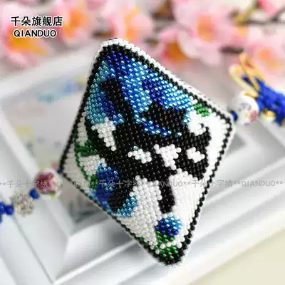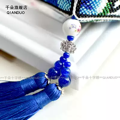 Thousand flowers cross-stitch beaded car pendant material bag Blue peony Pingan Fu car car decoration self-embroidered small pendant
