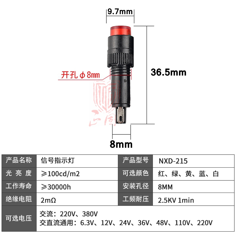 Small LED indicator NXD-215 power signal lamp welding foot AC DC12V24V220V bore 8mm