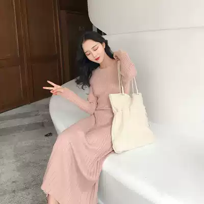 SYT autumn and winter must-enter bottoming knitted dress women's slim and thin pleated elastic sweater skirt medium and long skirt