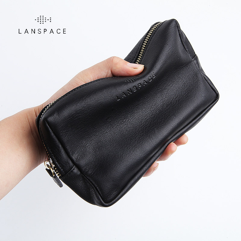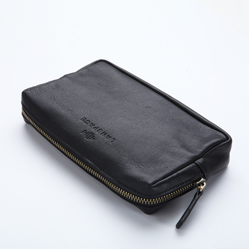 Blue leather men's leather zipper clutch bag first layer cowhide handbag Full leather handbag large capacity mobile phone bag
