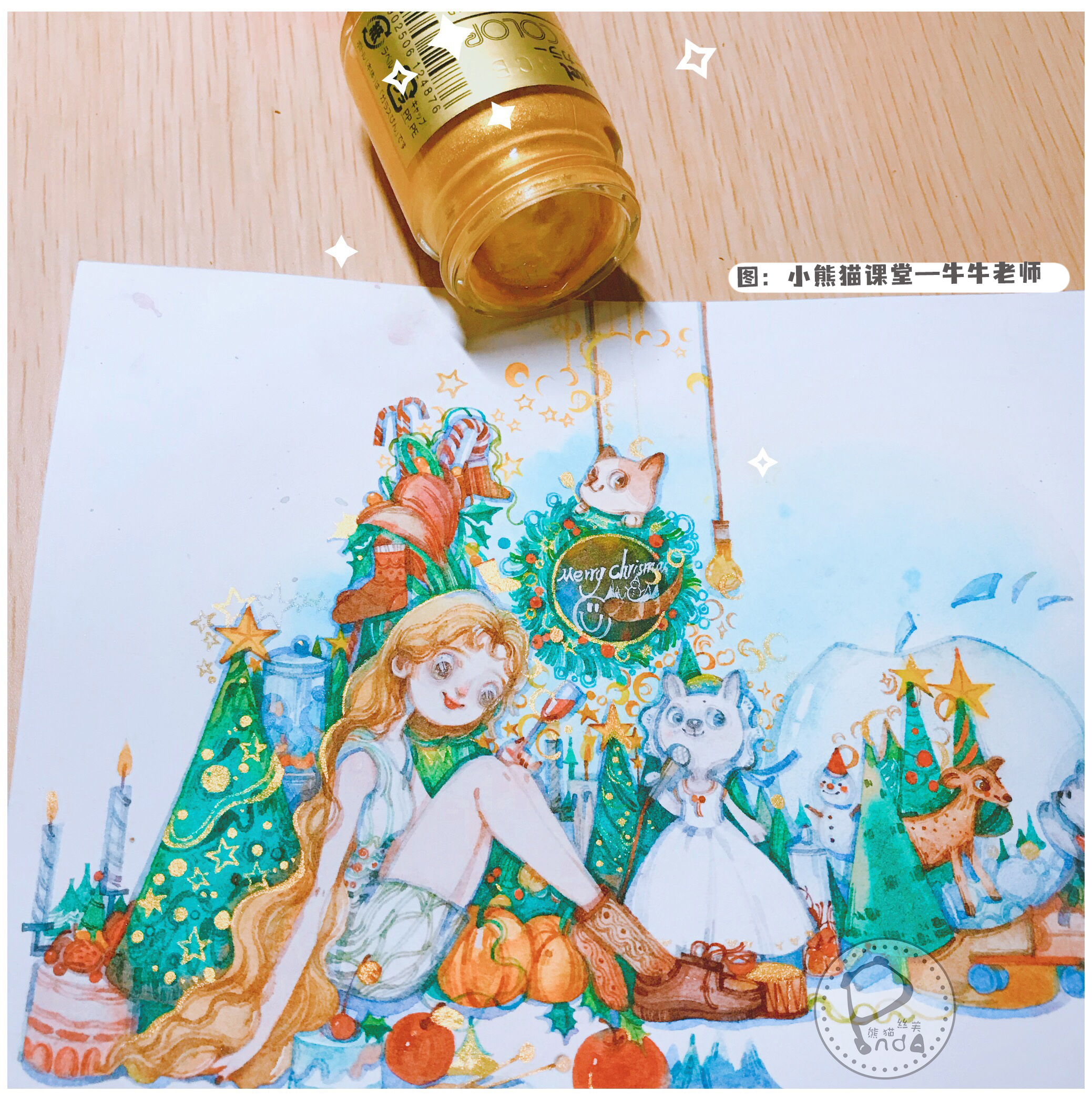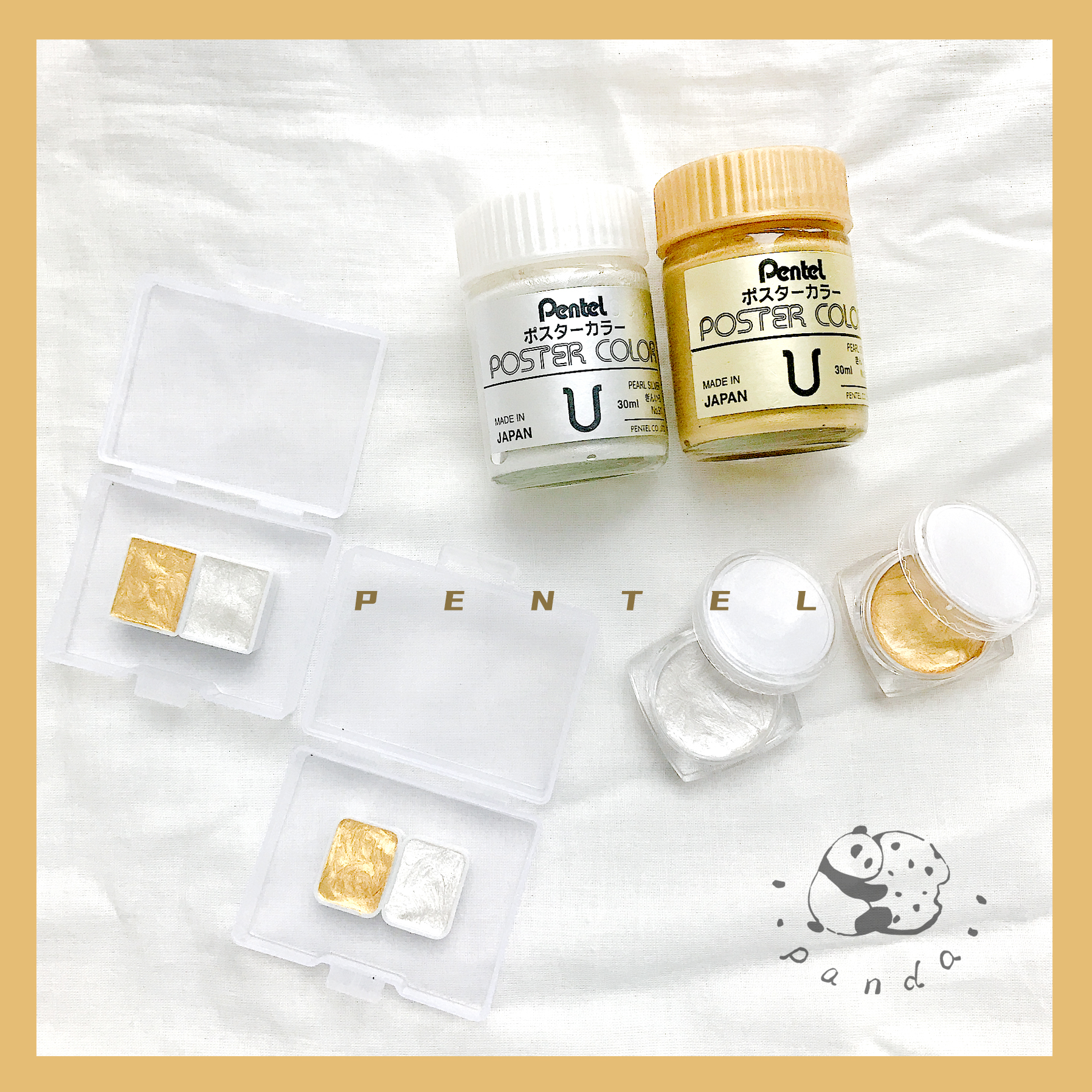 Pentel Japan sends Tonggold powder pigment to paint watercolor painting in gold color