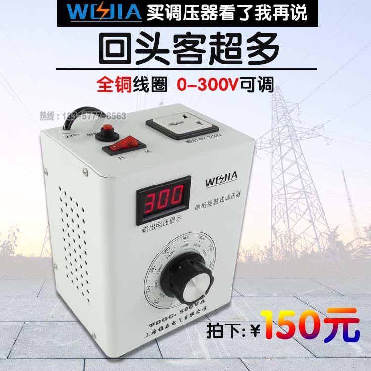 Single phase voltage regulator 220v AC regulation Contact type 0-300v adjustable power supply voltage regulator transformer 500W
