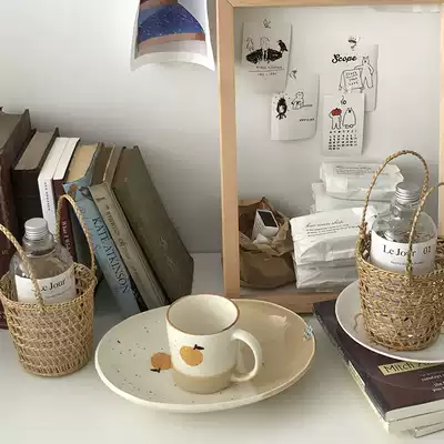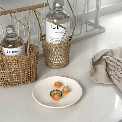 Tjjj hand-woven small bucket storage barrel flower basket ins desktop decoration pendulum shooting props