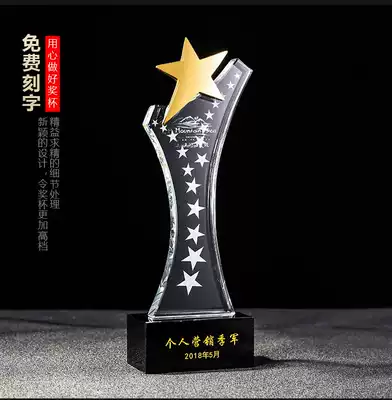 Starry five-pointed star Crystal trophy medal custom authorization card Business gift Free lettering spot