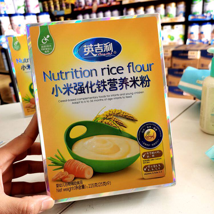 Yingluck Small Rice Flour Fortified Calcium Iron Zinc Nutrient Rice Flour Baby Rice Burnt Sidefood 225g * 4 boxes