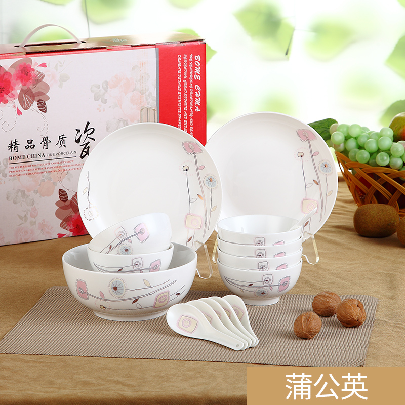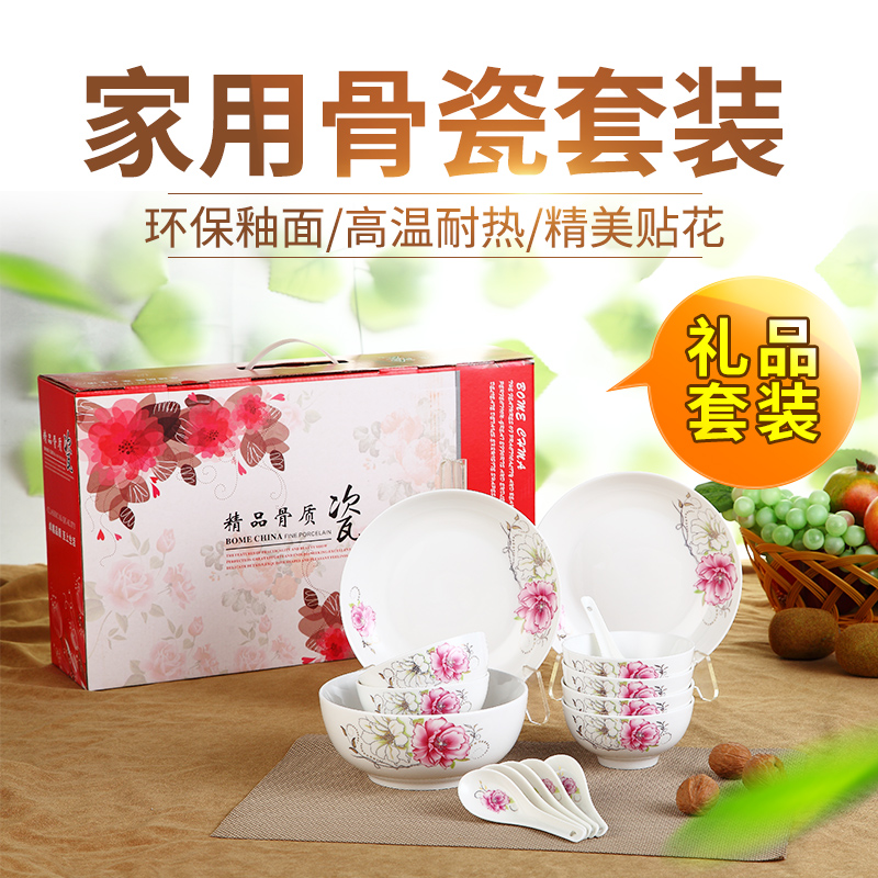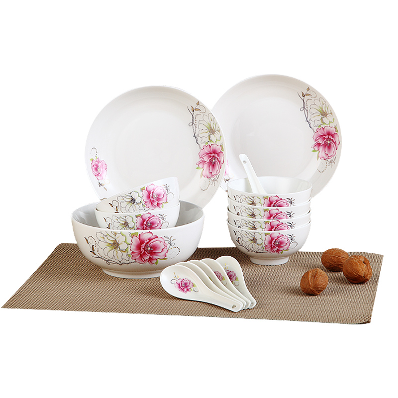 Home Kitchen Combination 15 Head Chinese Ceramic Rice Bowl Soup Bowl Tray Sub Spoon Gift Box Set Cutlery Customize