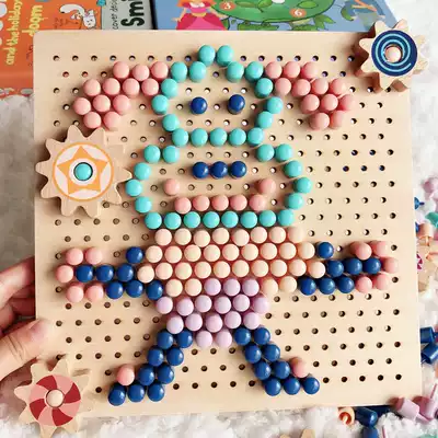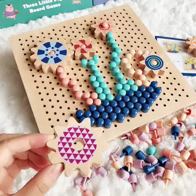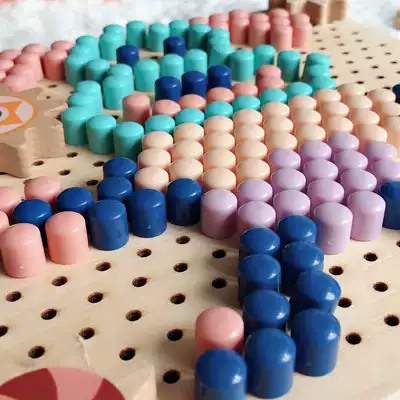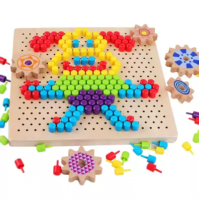 Children's jigsaw puzzle educational toy wooden mushroom nail combination plug-in board male and female baby intelligence development puzzle