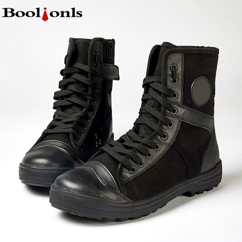 boolionls castle lions wheel security combat training shoes male high cylinder canvas for training cotton boots tactical combat training boots