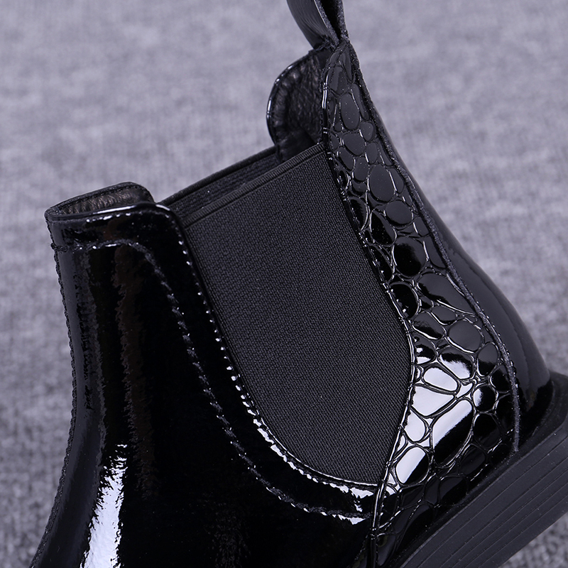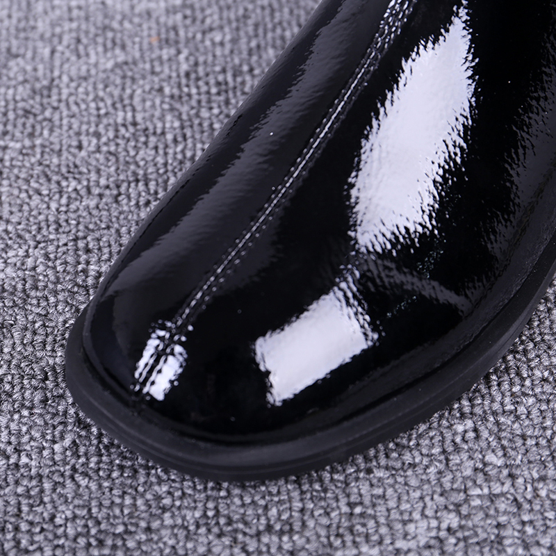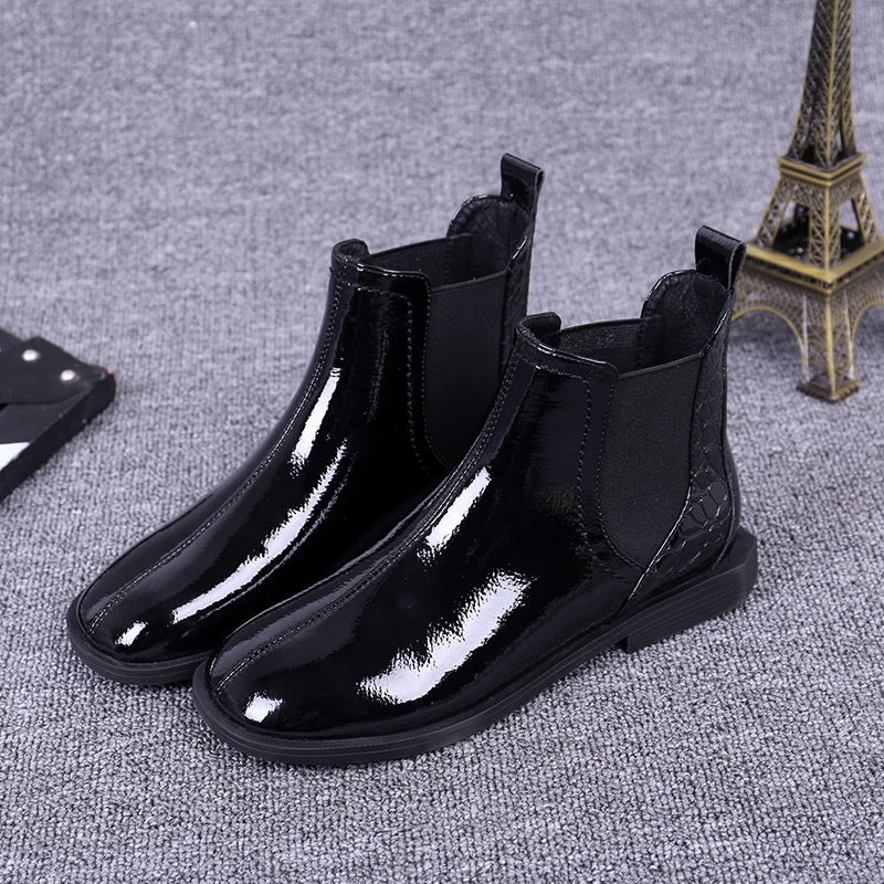 European and American 2022 Winter new women's shoes lacquered leather flat-bottomed short barrel Inlet wind short boots 100 hitch Martin boots