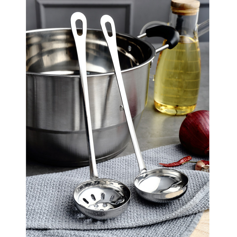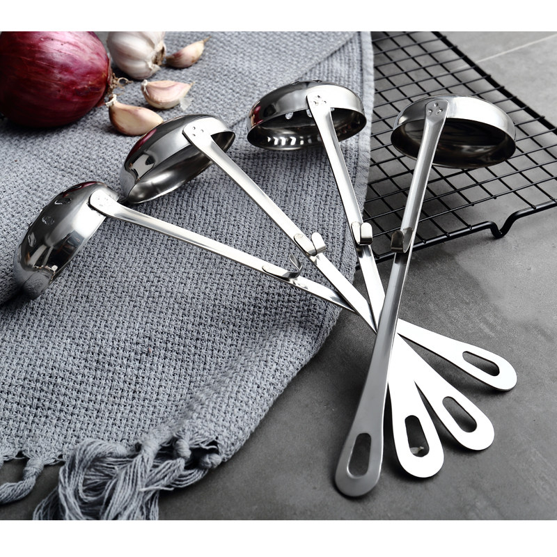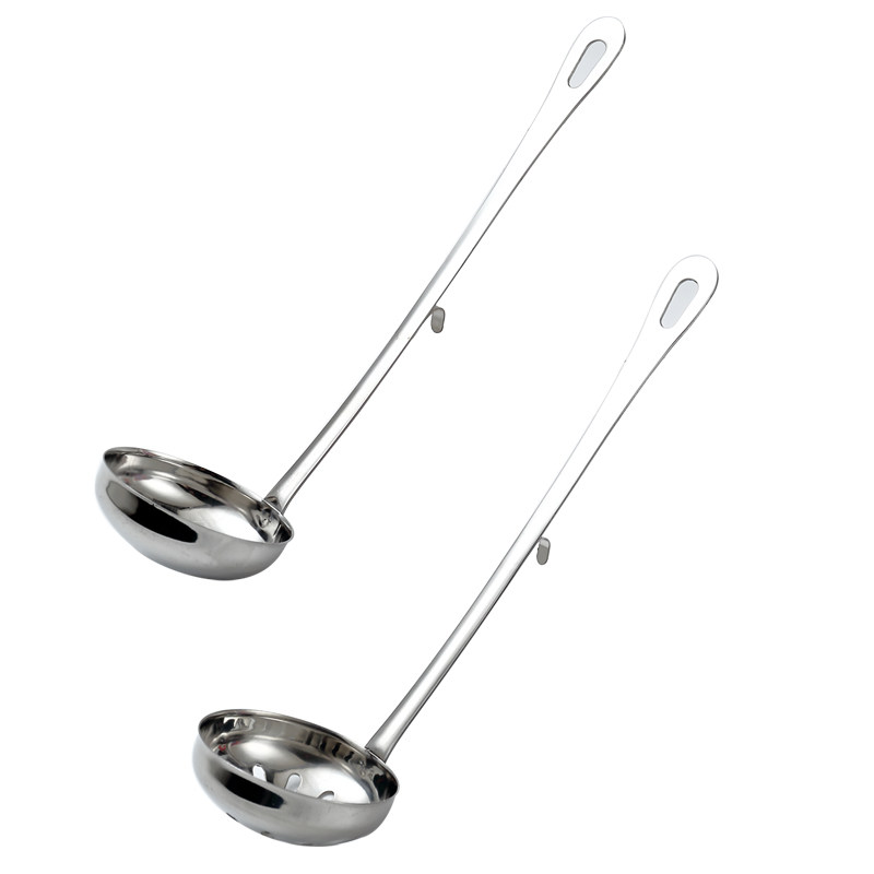 Stainless Steel Hot Pot Soup Spoon Leaky Spoon Integrated With Hook Suit Pearl Spoon Kitchen Home Hook Small Horn Soup Crust