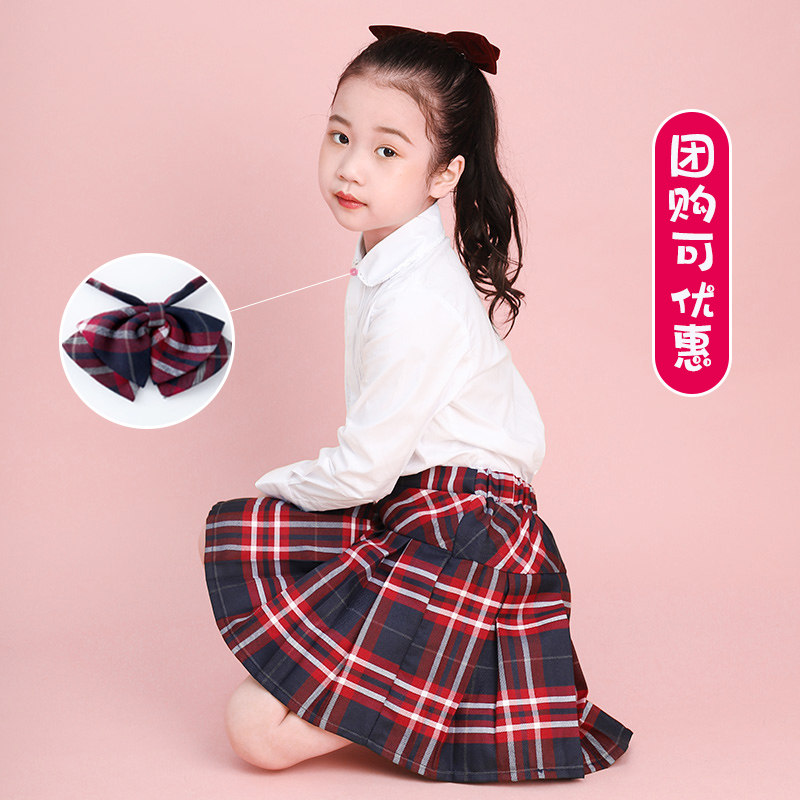 Scottish skirt hide black school dress black skirt Scottish skirt collar Scottish skirt Strip collar T-shirt card with its hundred pleats red and white plate skirt Scottish skirt round collar short sleeve shirt Scotch