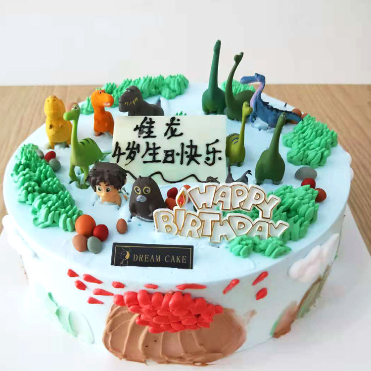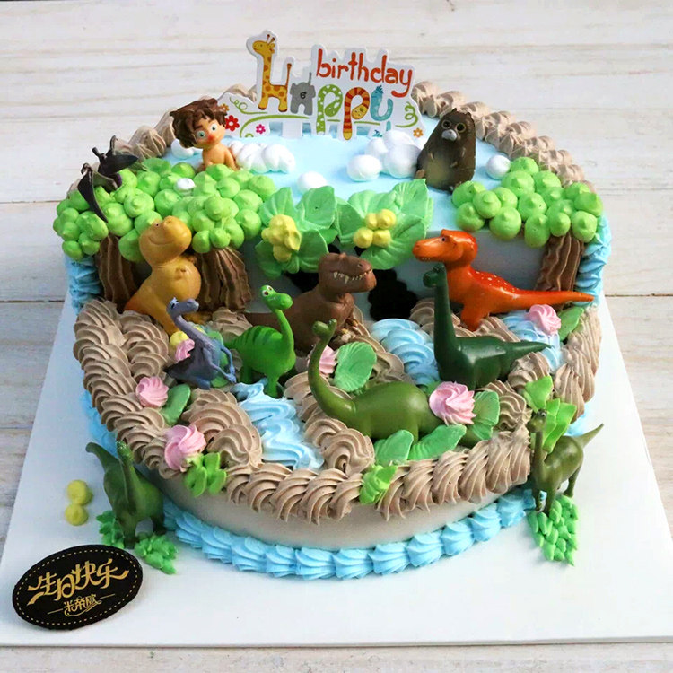 Cake decoration dinosaur headed scene birthday decoration fence rainbow tree coconut tree cartoon animal baking decoration