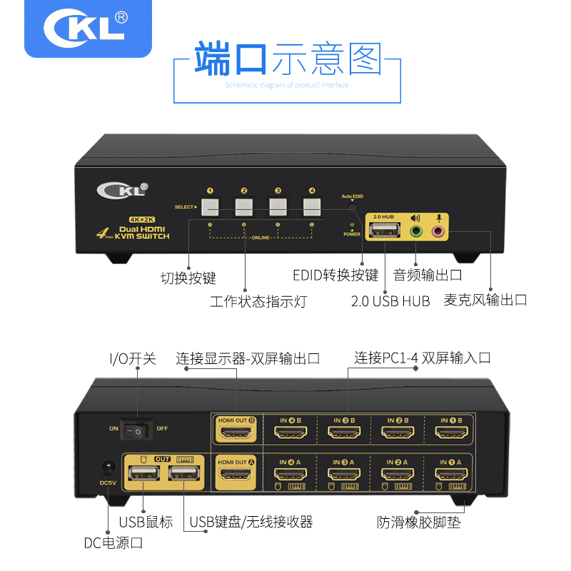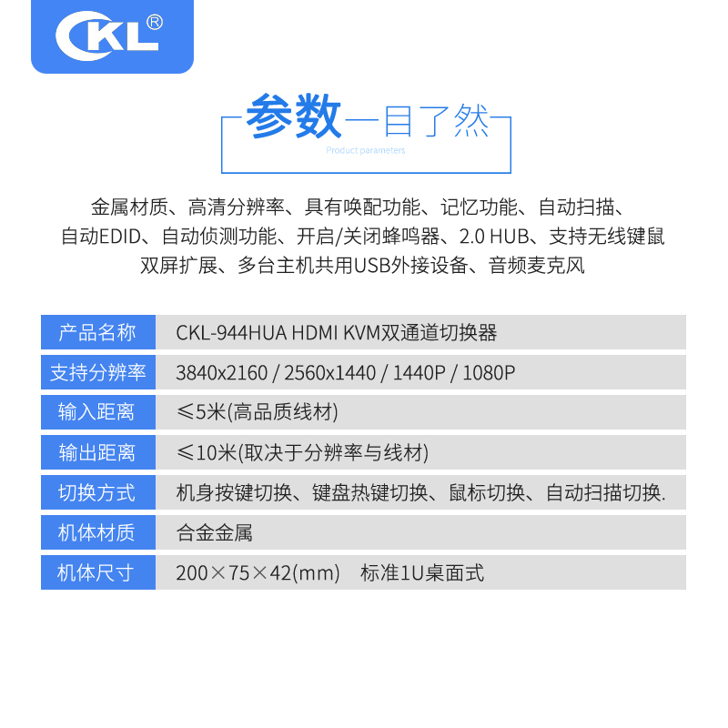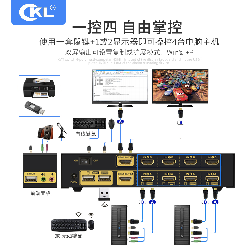 CKL kvm Switcher Dual Screen Extended Dual Channel HDMI Switcher CKL-942HUA