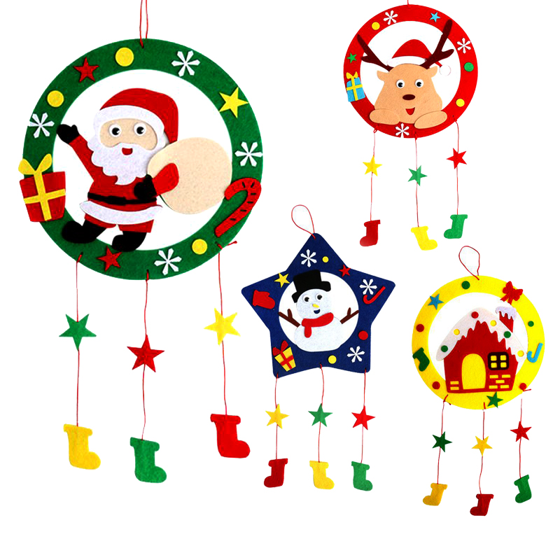 Christmas Gifts Children Unwoven Fabric Flower Rings Hanging Accessories Door Hanging Decoration Kindergarten Handmade Diy Making Material Bag