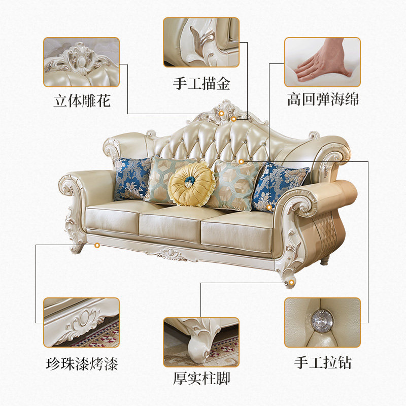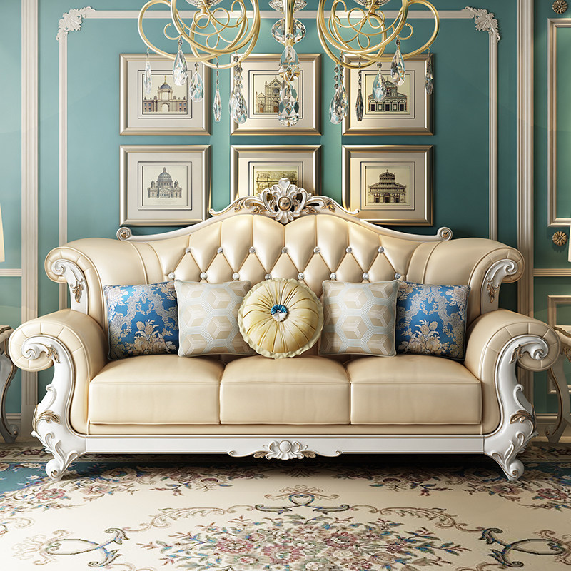 European sofa living room simple modern solid wood leather sofa luxury furniture combination villa size