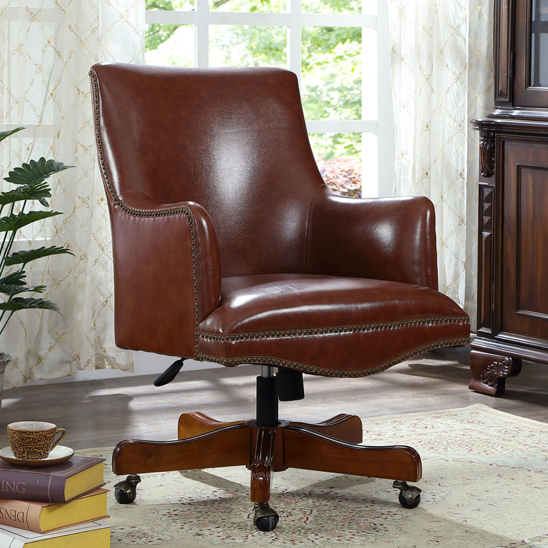 American leather swivel chair light luxury solid wood computer chair modern minimalist sedentary comfortable reclining office lifting student chair