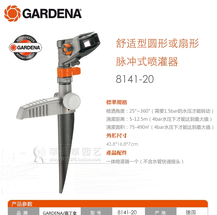 Gardena Pulse Nozzle - 8141 Pulse Nozzle - 10m Set Pulse Nozzle - 10m Set + 1888 Controller Pulse Nozzle - 10m Set + 1890 Controller Pulse Nozzle - 20m Set - 20m Set + 1888 Controller Pulsed Nozzle - 20m Set + 1890 Controller Beijing area provides sprinkler door-to-door design and installation