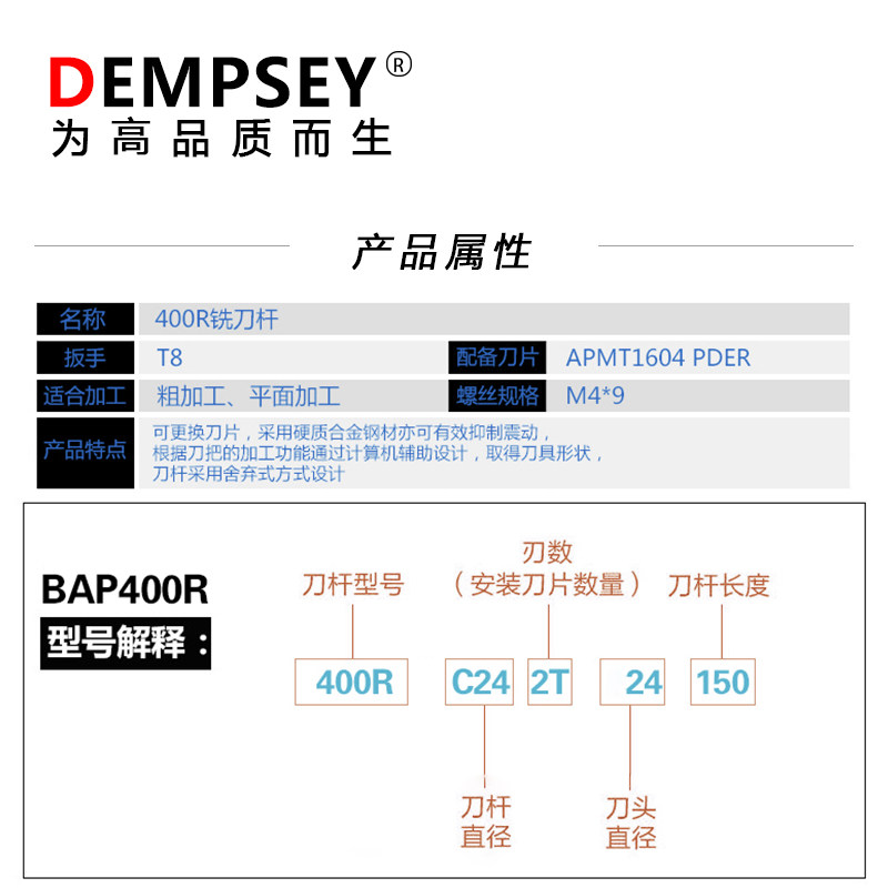 Taiwan 400R Knife Lever Right Angle Step Plane 26R0 8 Knife Rod APMT1604 Alloy Milling Cutter Unilateral Milling Cutter