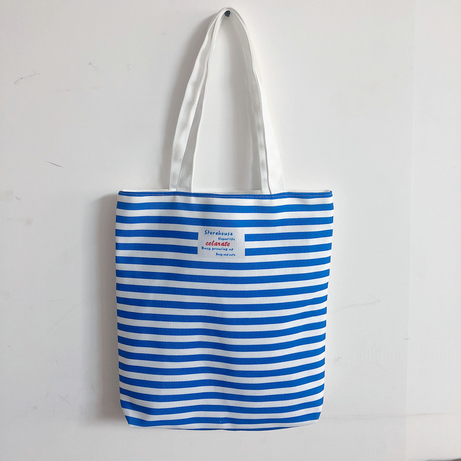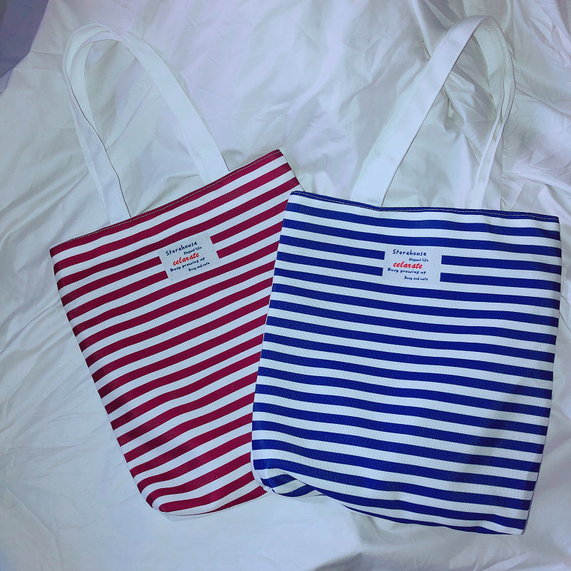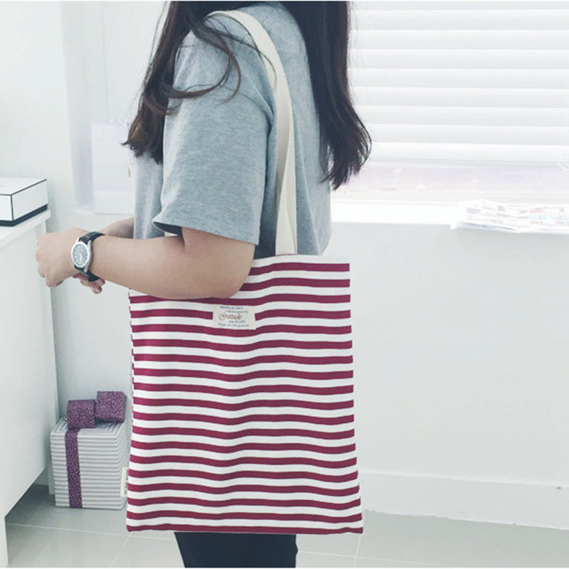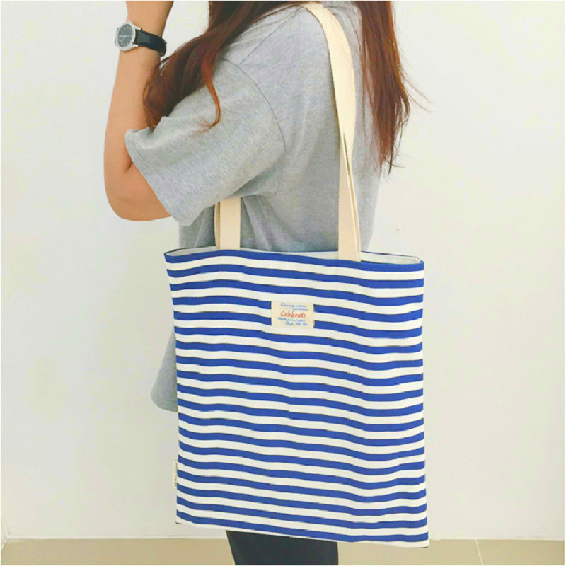 Korean version lazy wind canvas bag women's single shoulder simple student large-capacity environmental protection shopping bag striped women's bag handbag