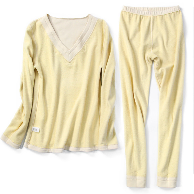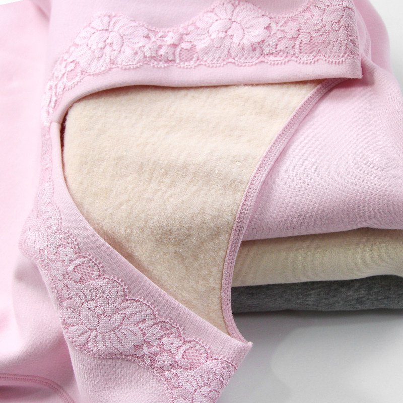 Heating clothes pants autumn winter new silk Cavet thickened autumn clothes sanitary pants Two sets of lace V collar fever clothes lady