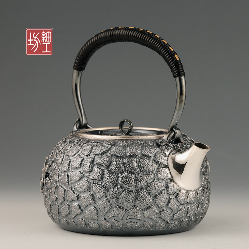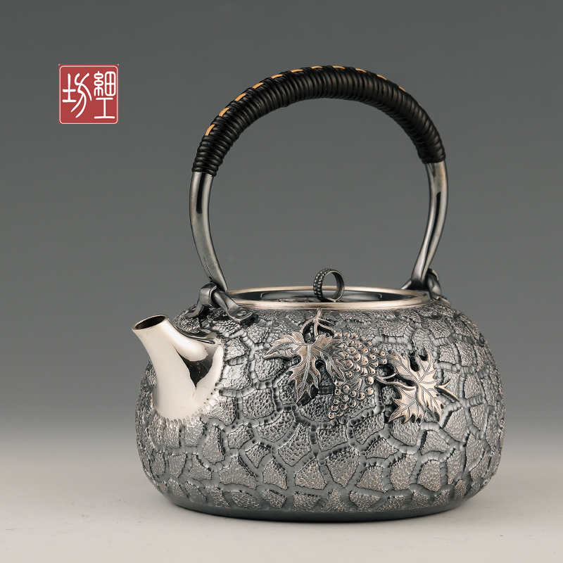 Fine workshop silver pot Sterling silver 999 kettle Handmade sterling silver teapot A silver mouth to hit the grape pot