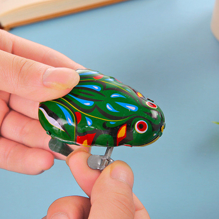 Classic nostalgic children's toy winding iron frog can run winding spring jumping educational toy