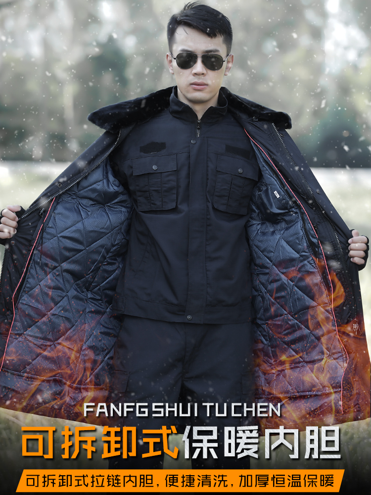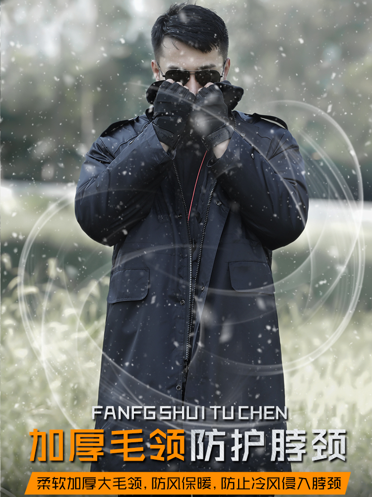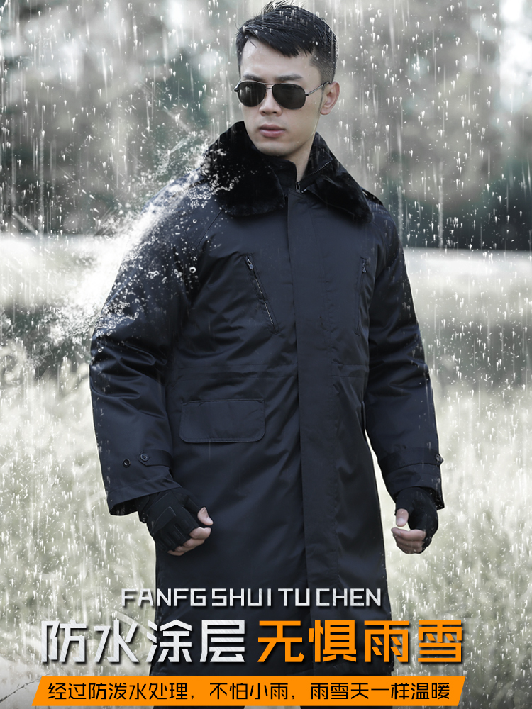 Black waterproof windproof Northeastern Army Cotton coat Winter Male lengthened section Multi-functional security Anti-cold suit thickened Raubao