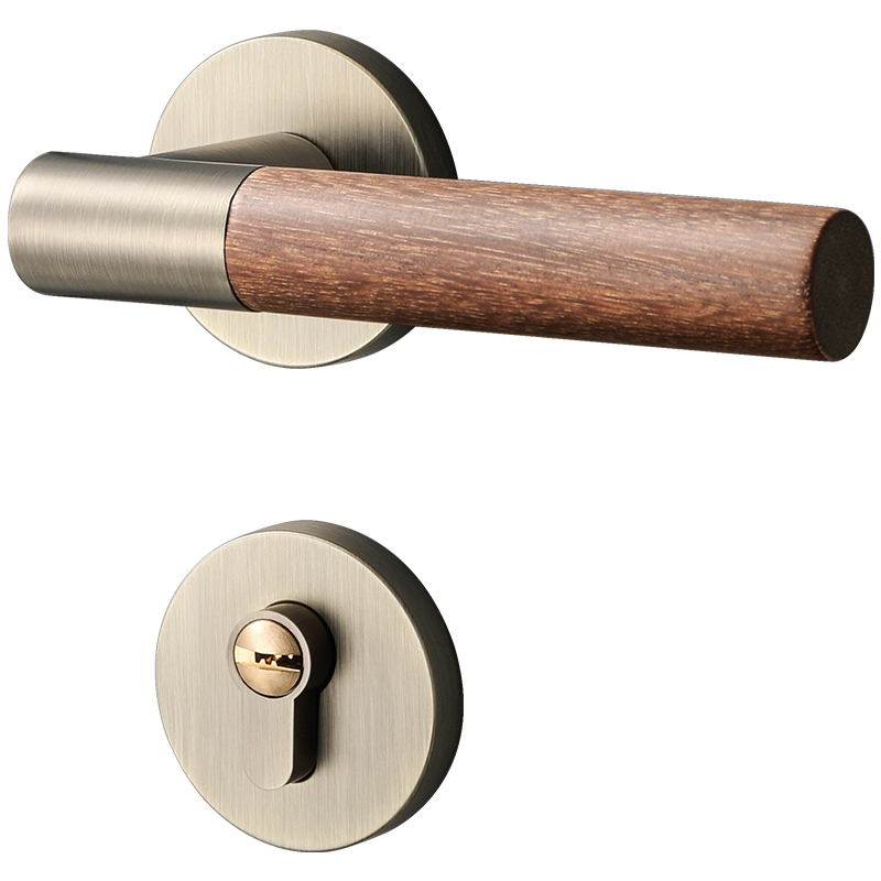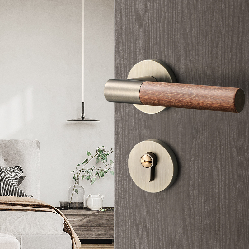 New Chinese wood grain house door lock bedroom two-piece door lock indoor lock mute solid wood door handle magnetic wood door lock