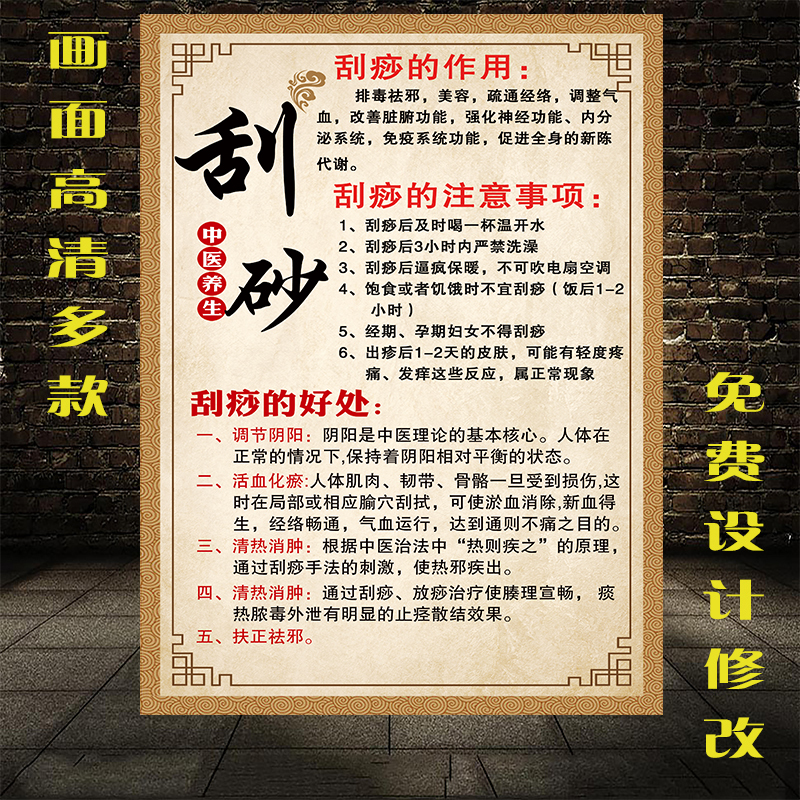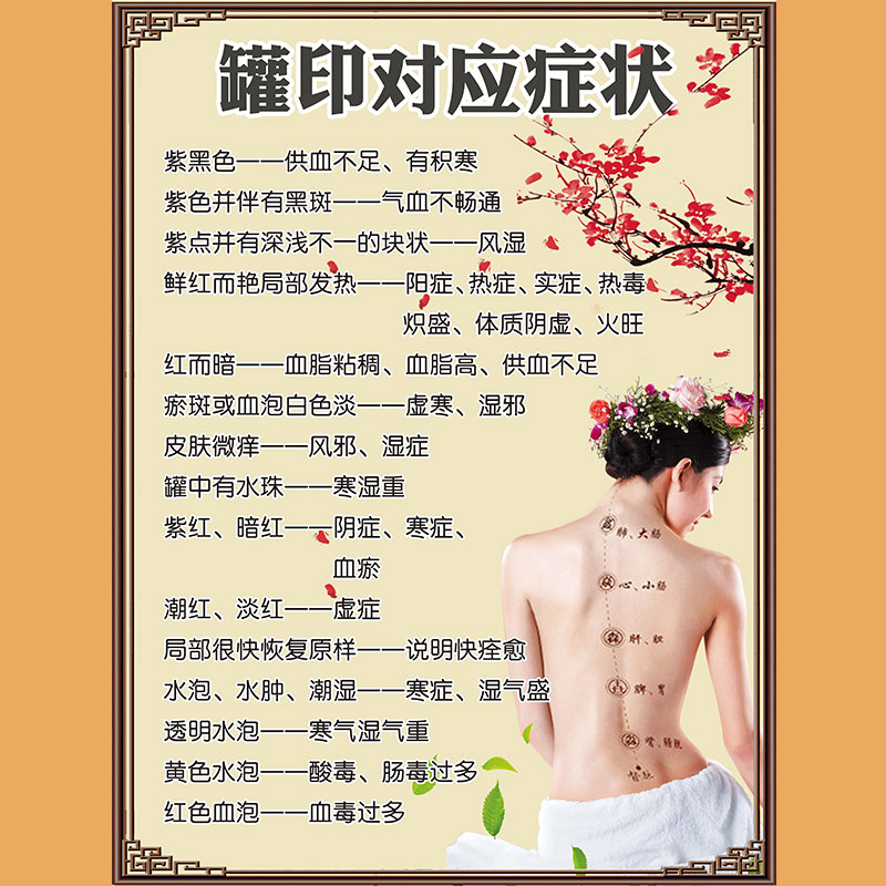 Scraping and cupping advertising posters on the wall promotional posters and corresponding symptoms illustrations TCM cupping shop activity pictures