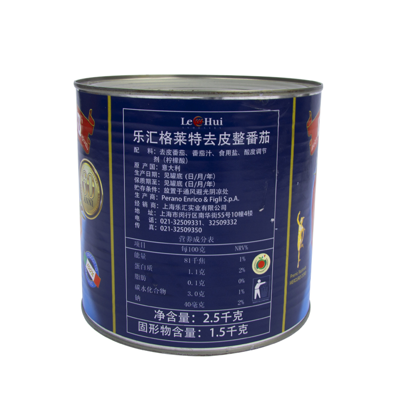 Shanghai Lehui Italy Imports peeled whole tomato cans 2 5KG large cans of Italian pasta Pizza Ketchup 6 Canned