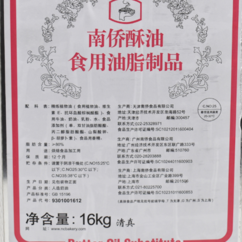 South Bridge Crisp Oil Baking Biscuit Bread Cookie Special Oil South Overseas Chinese Ghee Oil 16kg barrels