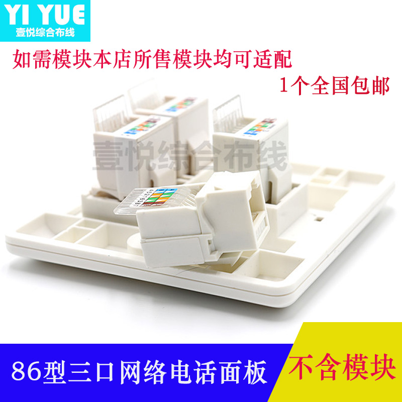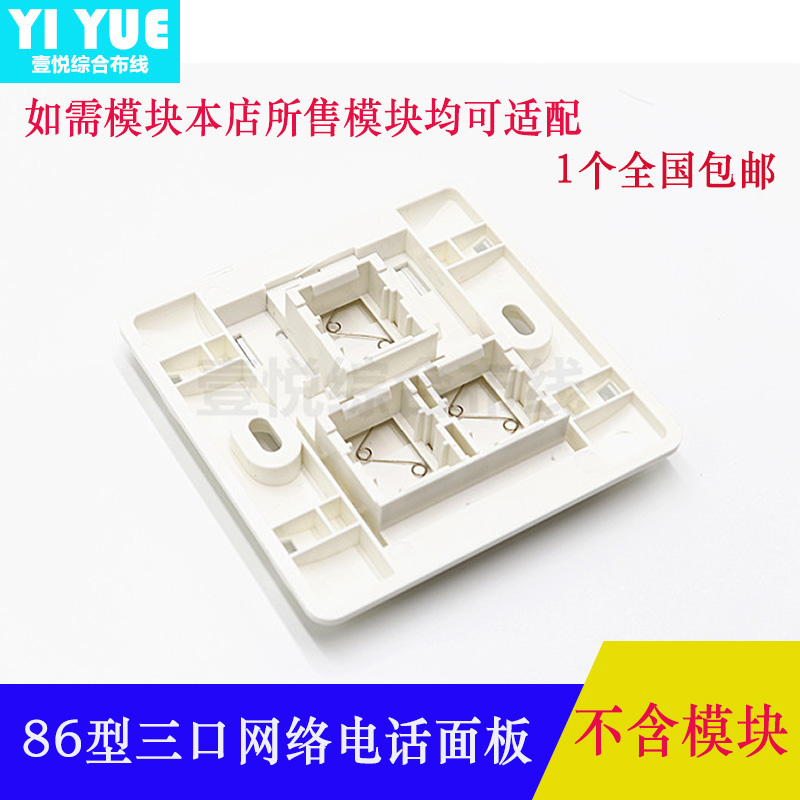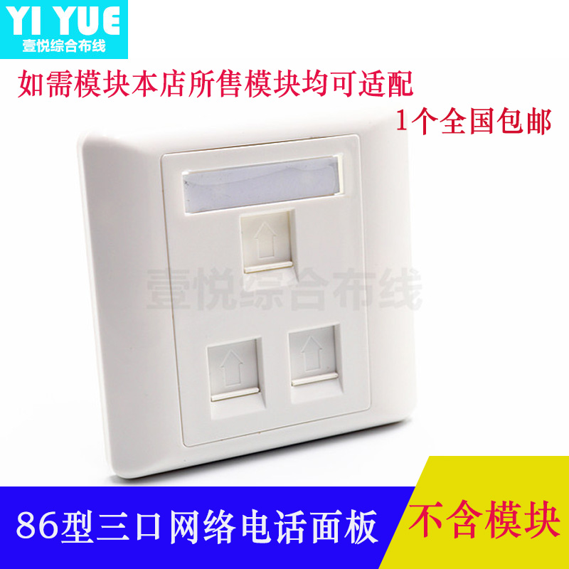 86 type three-port network panel RJ45RJ11 broadband socket Network cable Telephone line Computer socket Module panel