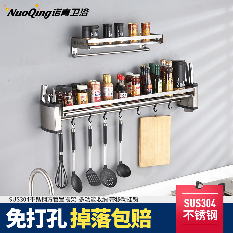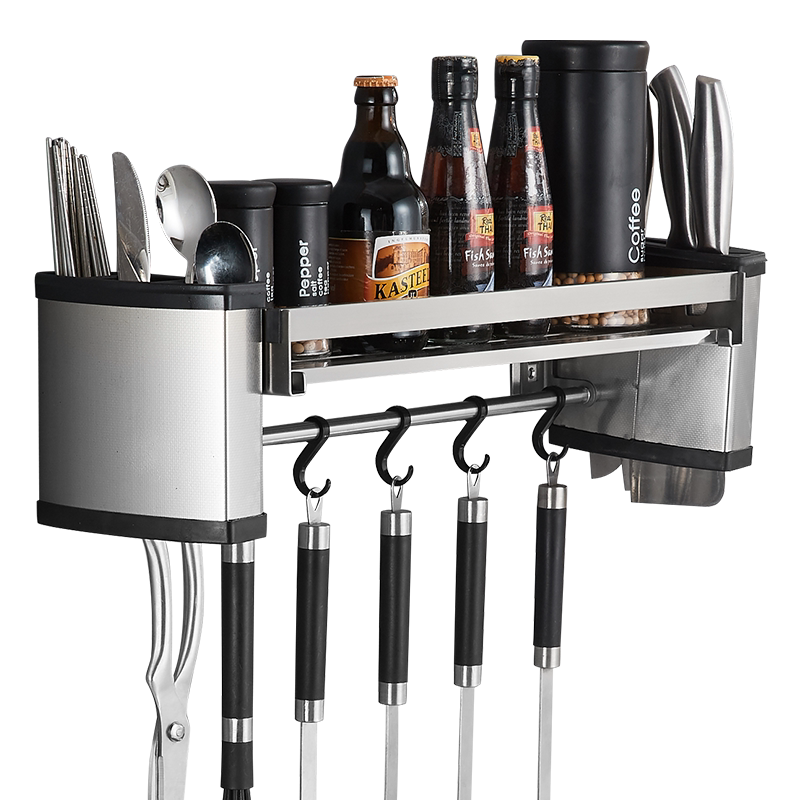 Kitchen Shelve Wall Wall-mounted Wall Free 304 Stainless Steel Seasonings Containing Shelf Hanging Hook Pendant Hook Pendant