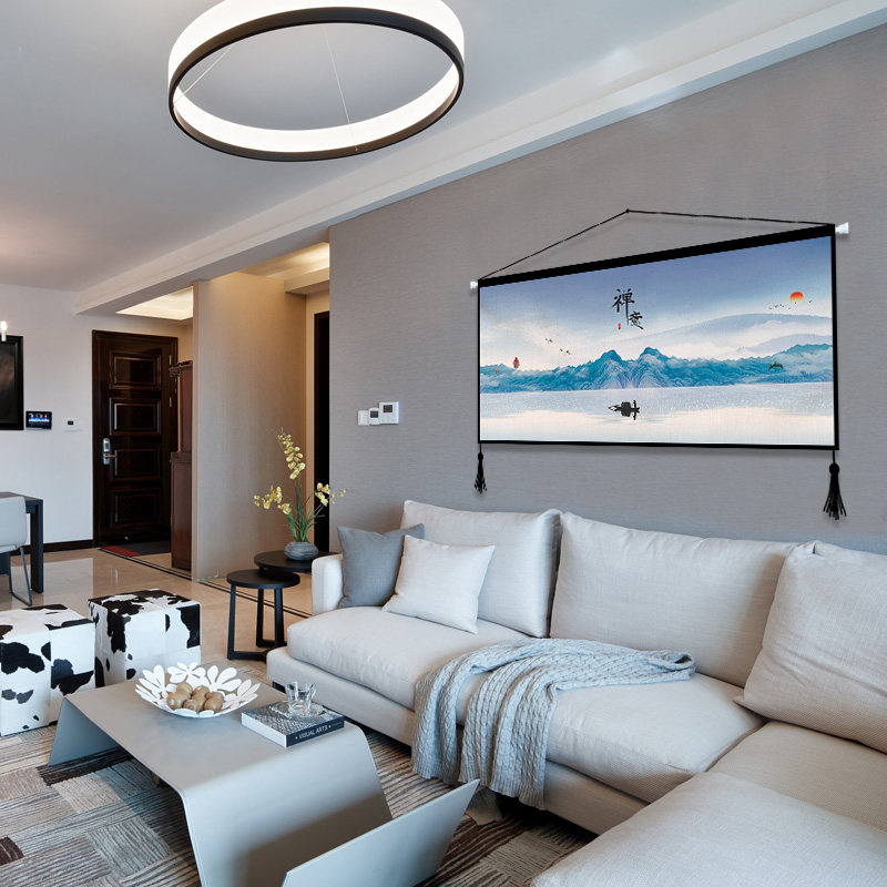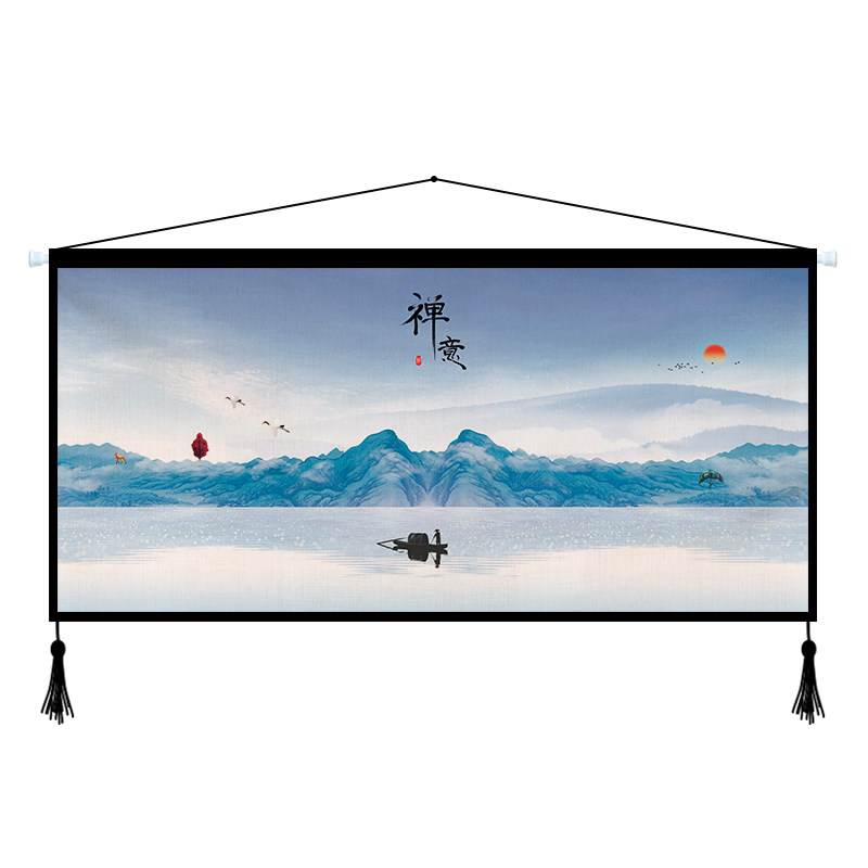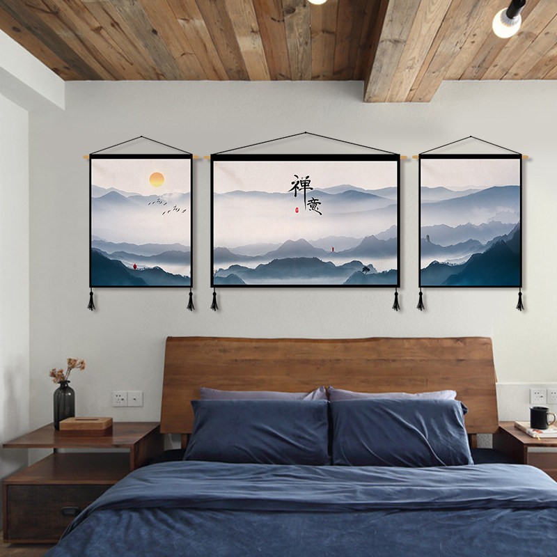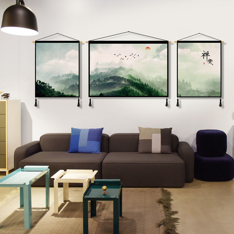 Chinese Zen landscape triple canvas art hanging painting living room sofa background wall decorative painting study porch tapestry