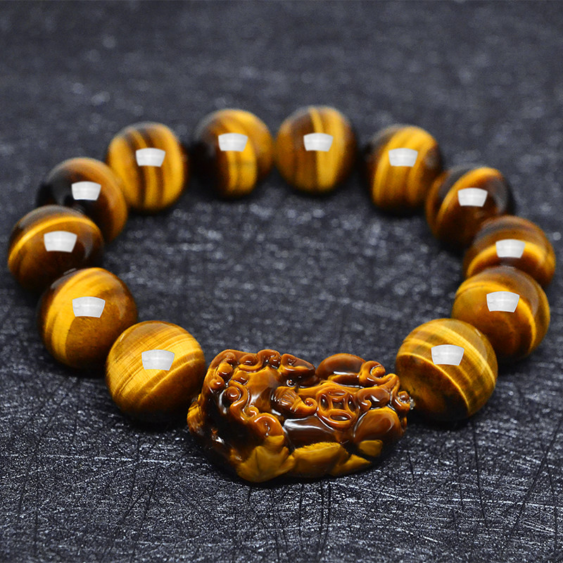 Natural yellow tiger eye gemstone Pixiu bracelet Pichu tiger eye wood change Buddha beads string Jewelry gift female natal Ox year male