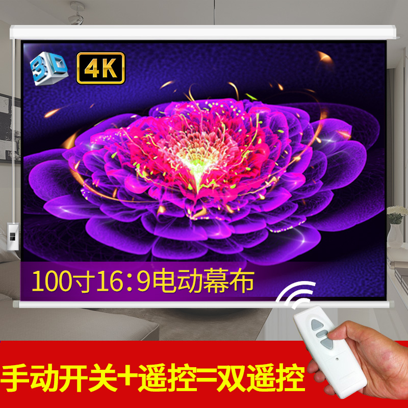 100-inch electric wide screen cloth 16: 9 home office projector white plastic glass fiber wide screen 4K HD curtain