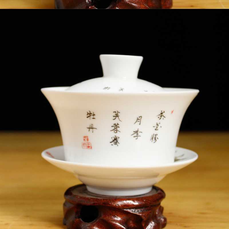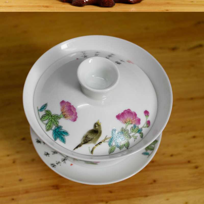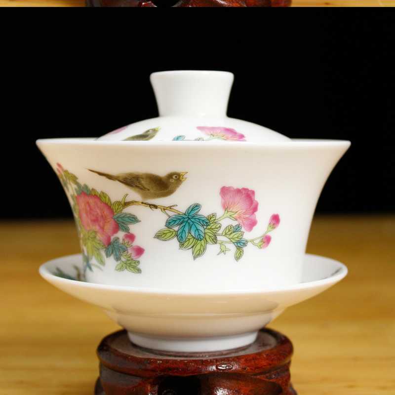 Antique Jingdezhen Ceramics Flower Bowl Cover Bowl Pastel Blue Blood Three Cover Bowls Kung Fu Tea Tool