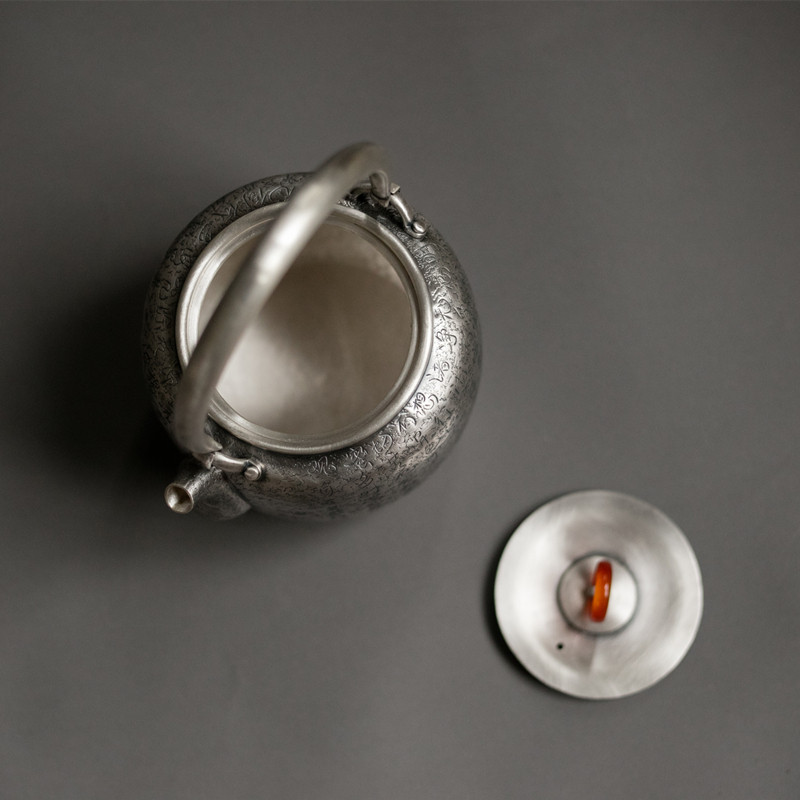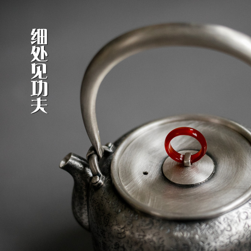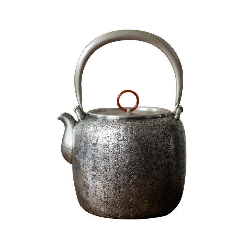 Kung fu Tao foot silver 999 silver pot pure silver Ti-beam pot by hand engraving Heart via silver teapot boiling kettle