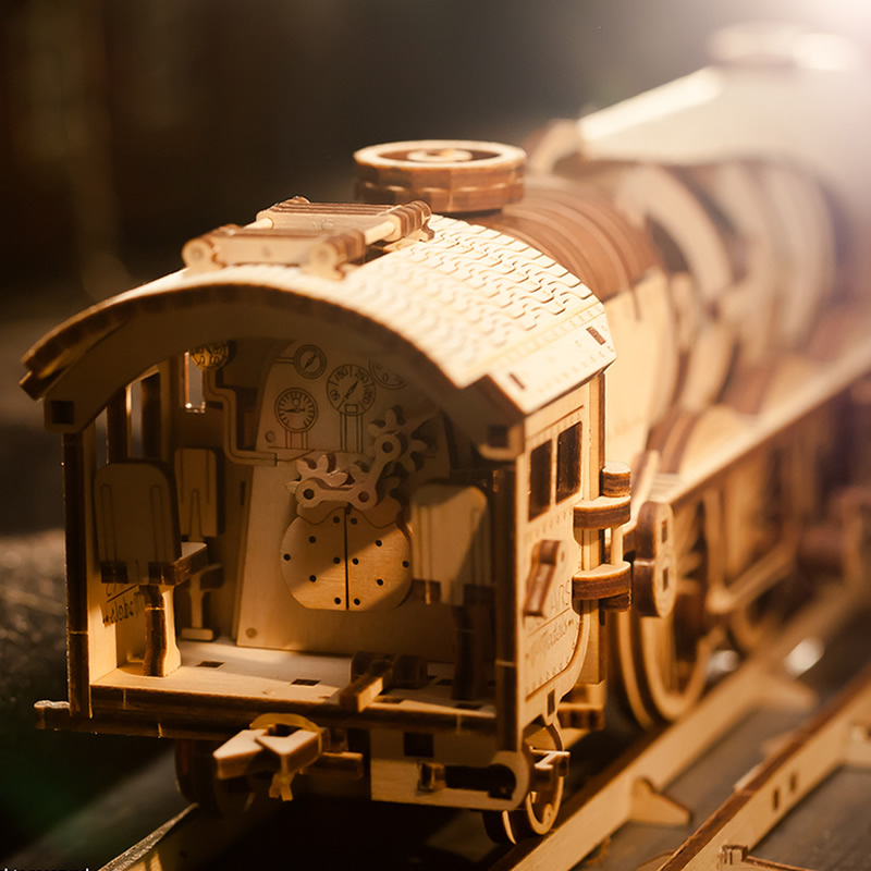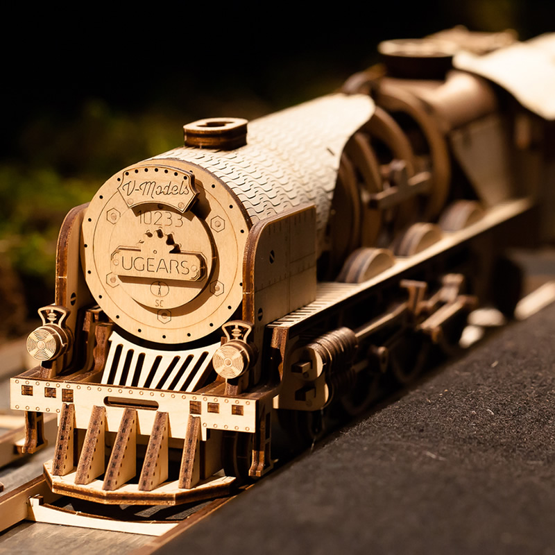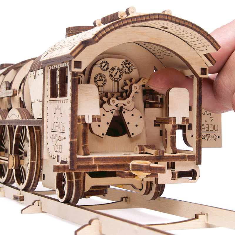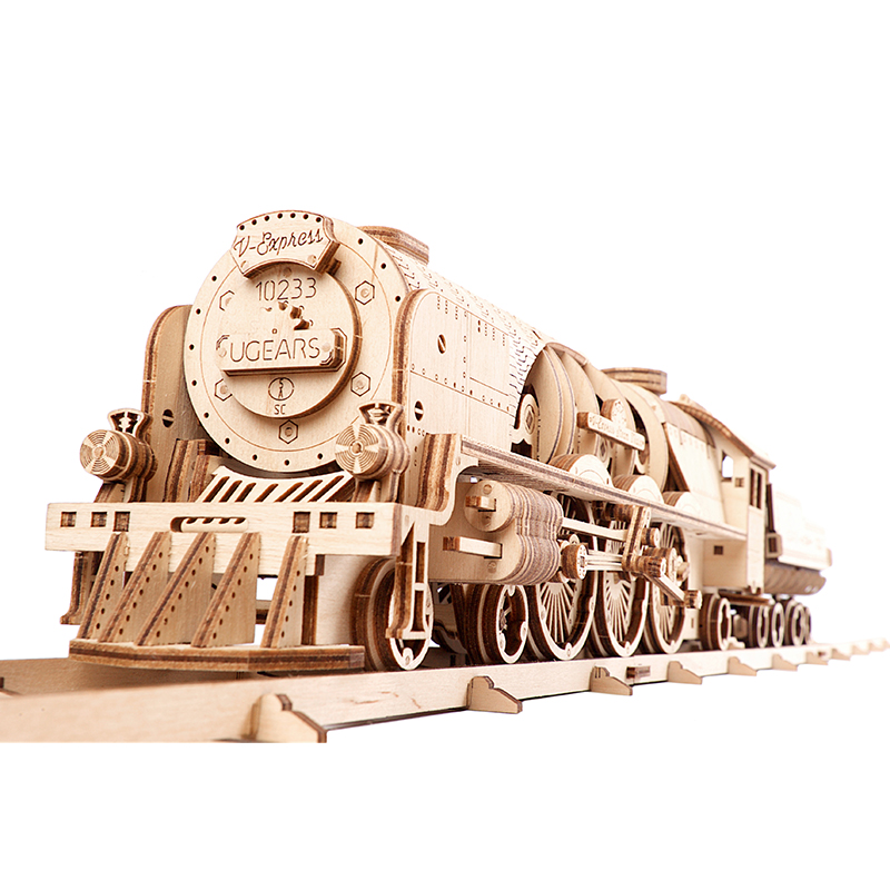 Ukrainian UGEARS New second-generation locomotive V-Express Rail Train Wood Mechanical Transmission Model Toys