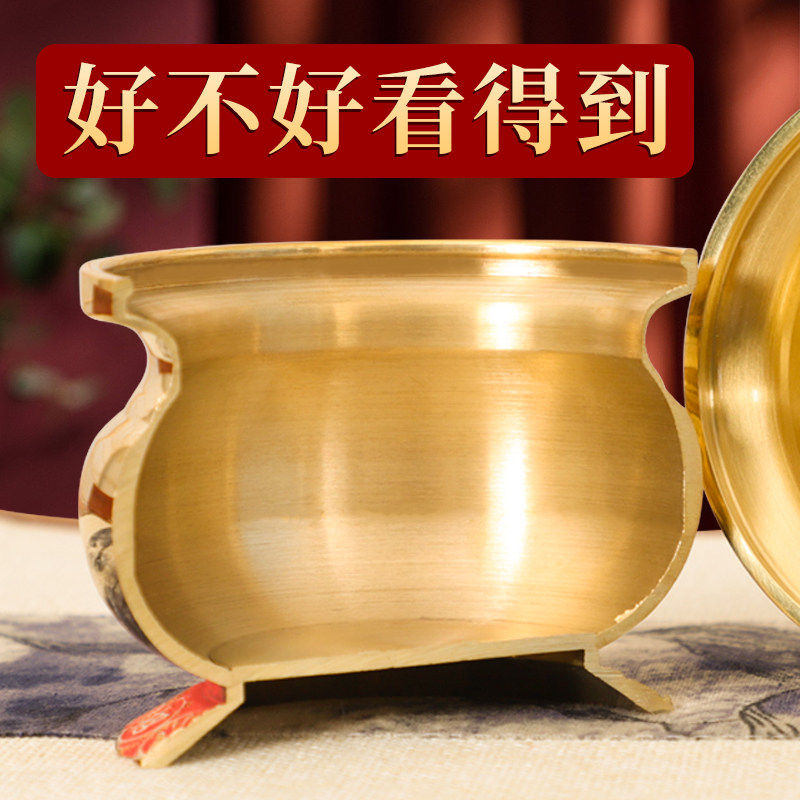 Pure copper ingot incense burner to attract wealth and treasure for money burner Buddha hall incense burner worship Buddha to offer red god of wealth incense burner