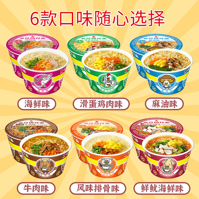 (12 bowls recommended for tasting) - 12 bowls mixed with 6 flavors (18 bowls with hot sale) - 6 flavors mixed with a total of 18 bowls (12 bowls) - seafood flavor * 12 bowls (12 bowls) - rib flavor * 12 bowls (12 bowls) - slippery egg chicken flavor * 12 bowls (12 bowls) - braised beef flavor * 12 bowls (12 bowls) - sesame oil flavor * 12 bowls (12 bowls) - spicy fresh squid seafood flavor * 12 bowls (18 bowls) - seafood flavor * 18 bowls (whole carton) (18 bowls) - slippery egg chicken flavor * 18 bowls (whole carton) (18 bowls) - Flavored pork ribs *18 bowls (whole carton) (18 bowls) - Braised beef flavor *18 bowls (whole case) (18 bowls) - Spicy fresh squid seafood flavor *18 bowls (whole carton) (18 bowls) - Sesame oil flavor * 18 bowls (whole carton) (18 bowls) - Seafood flavor *6 + Braised beef *6 + Flavored ribs * 6 (18 bowls) Seafood flavor *6 + Sesame oil flavor * 6 + Spicy squid seafood flavor *6