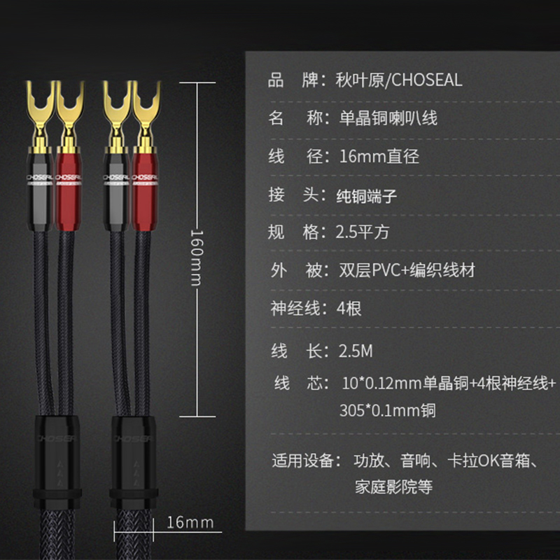 Choseal autumn leaf original single crystal copper horn line with banana hair burn level HIFI main speaker line Y-plug home theater power amplifier acoustic connection line LB5108 QS991 2