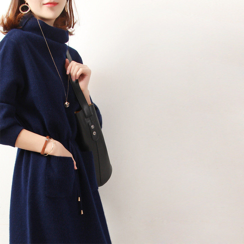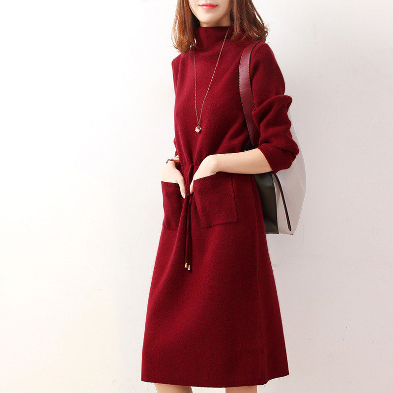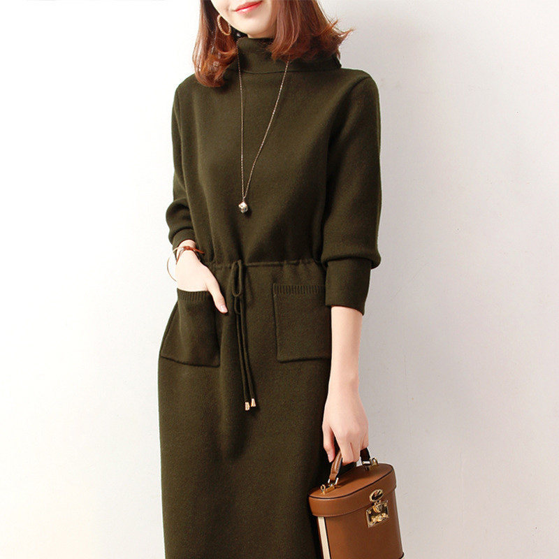 Autumn and winter dress women 2020 new long-sleeved temperament lady mink velvet Korean version of the long version of the thin high-neck base skirt