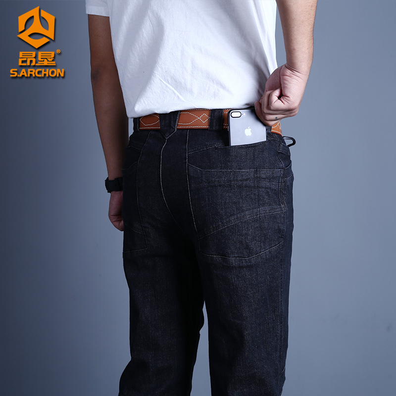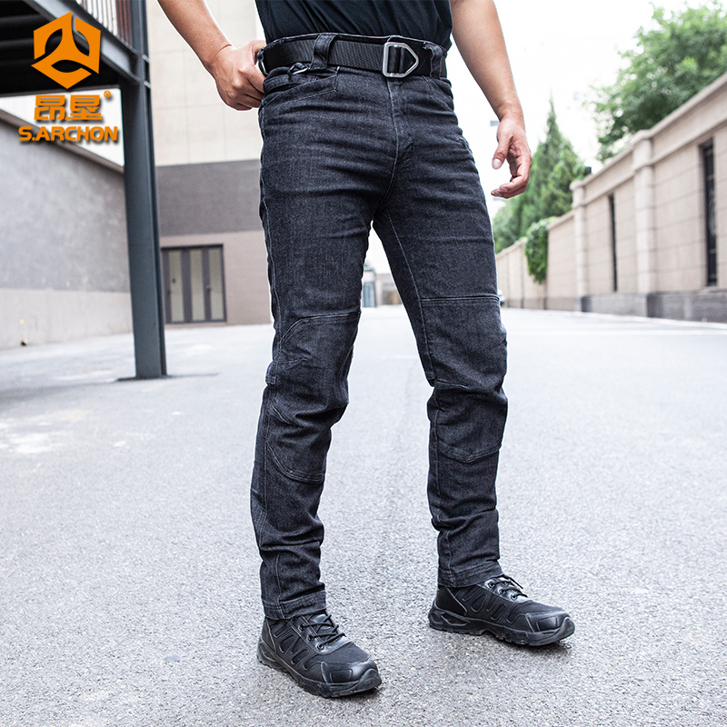 Spring and Autumn city commuter tactical jeans men's stretch slim-fit multi-pocket outdoor overalls Military fans for training pants