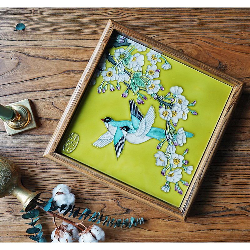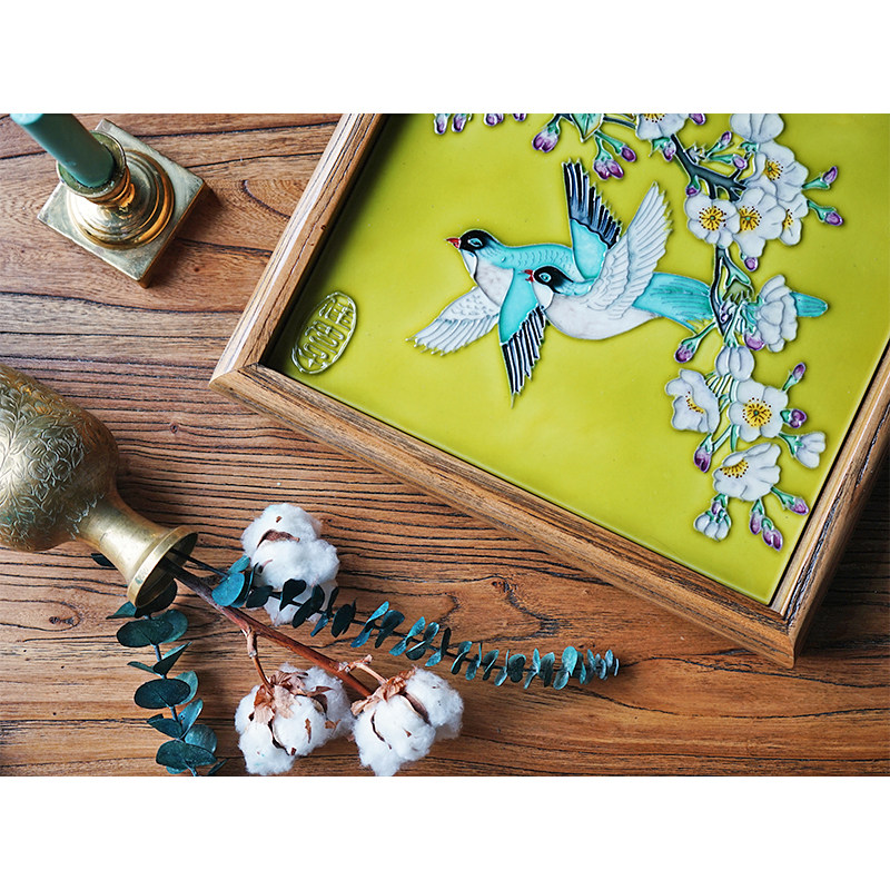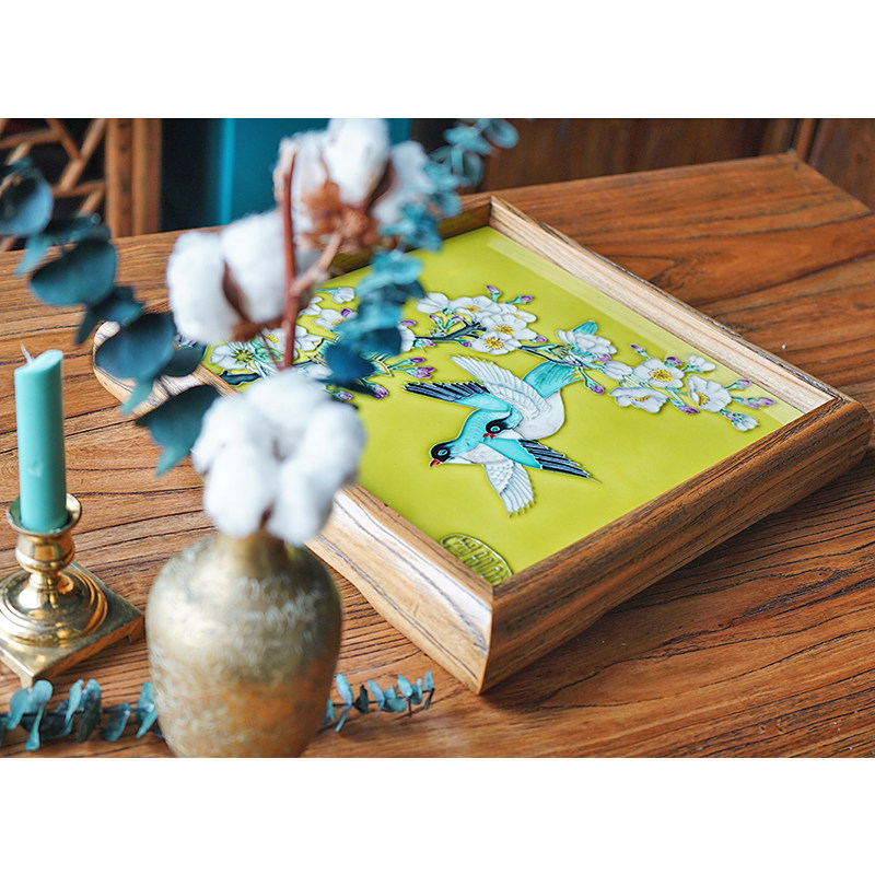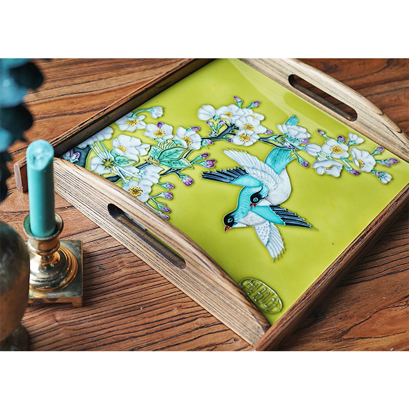 Good women's ceramic painting home decoration decoration tray American solid wood storage tray tea tray fruit tray wedding gift