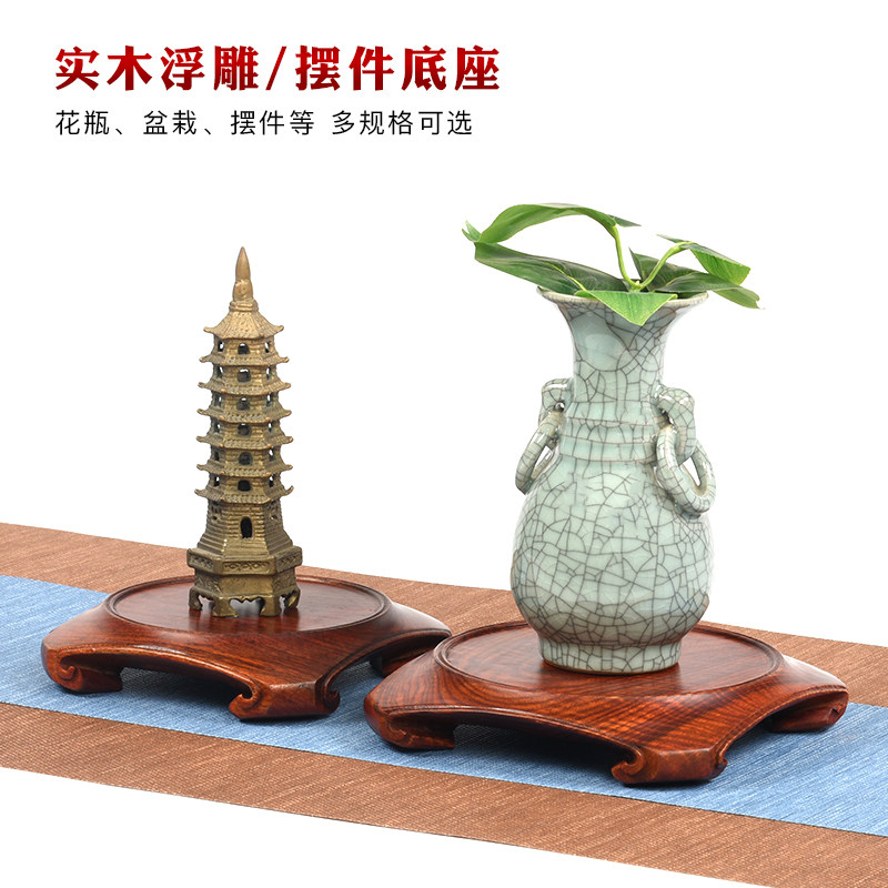 All solid wood root carving Buddha statue strange stone base can be grooved vase flower bonsai decoration round jade stone base bracket