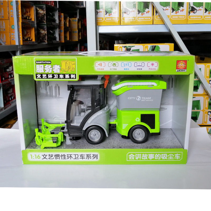 The literary and art will tell the story's inertial and fall-resistant road cleaning the sweeping car dust suction car pushes the snowmobile boy puzzle toy