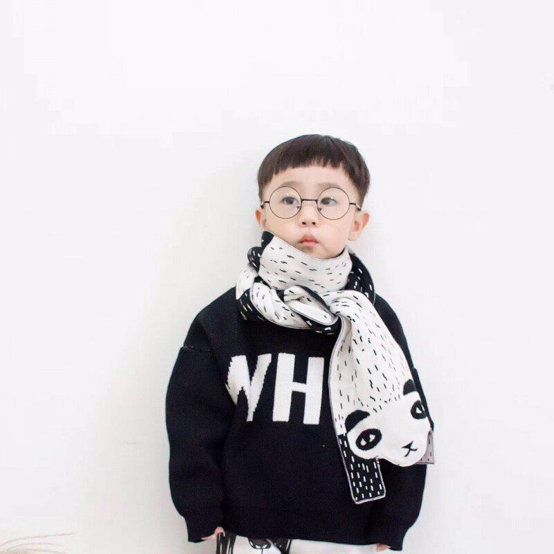 (Qiaojia) New autumn and winter cotton double-layer knitted panda shape double-sided scarf children's warm scarf